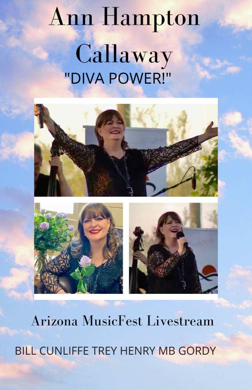Watch Ann’s fabulous first live show since the pandemic began on livestream! This special encore presentation will be available on the Arizona Musicfest website from 6:00pm EST on Friday, May 7 through Midnight on Sunday, May 9, 2021. Celebrated cabaret star Ann Hampton Callaway is joined by her trio Bill Cunliffe, Trey Henry and MB Gordy for a special performance featuring hits by some of the great female divas of all time. For tickets, go to https://azmusicfest.secure.force.com/ticket/#/events/a0S4p00000A1g6DEAR